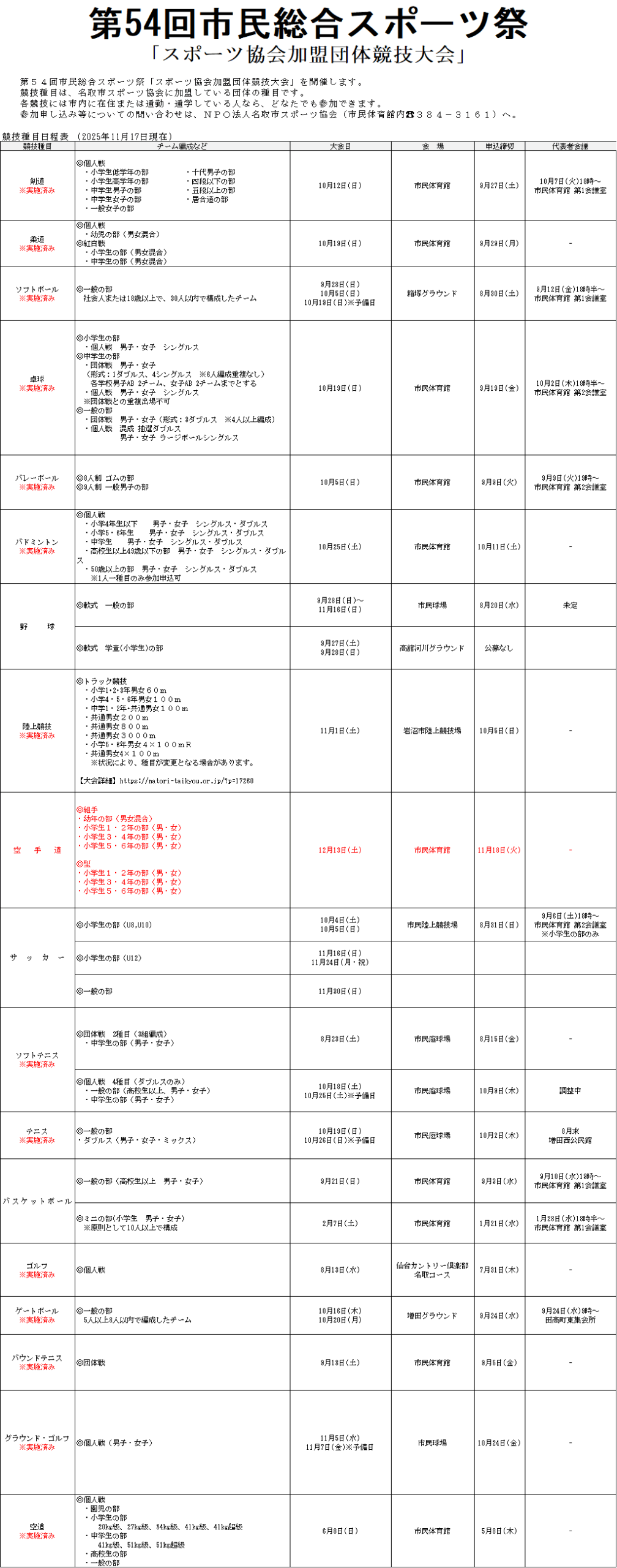 名取市スポーツ協会 加盟団体競技大会(R7.11.17更新)